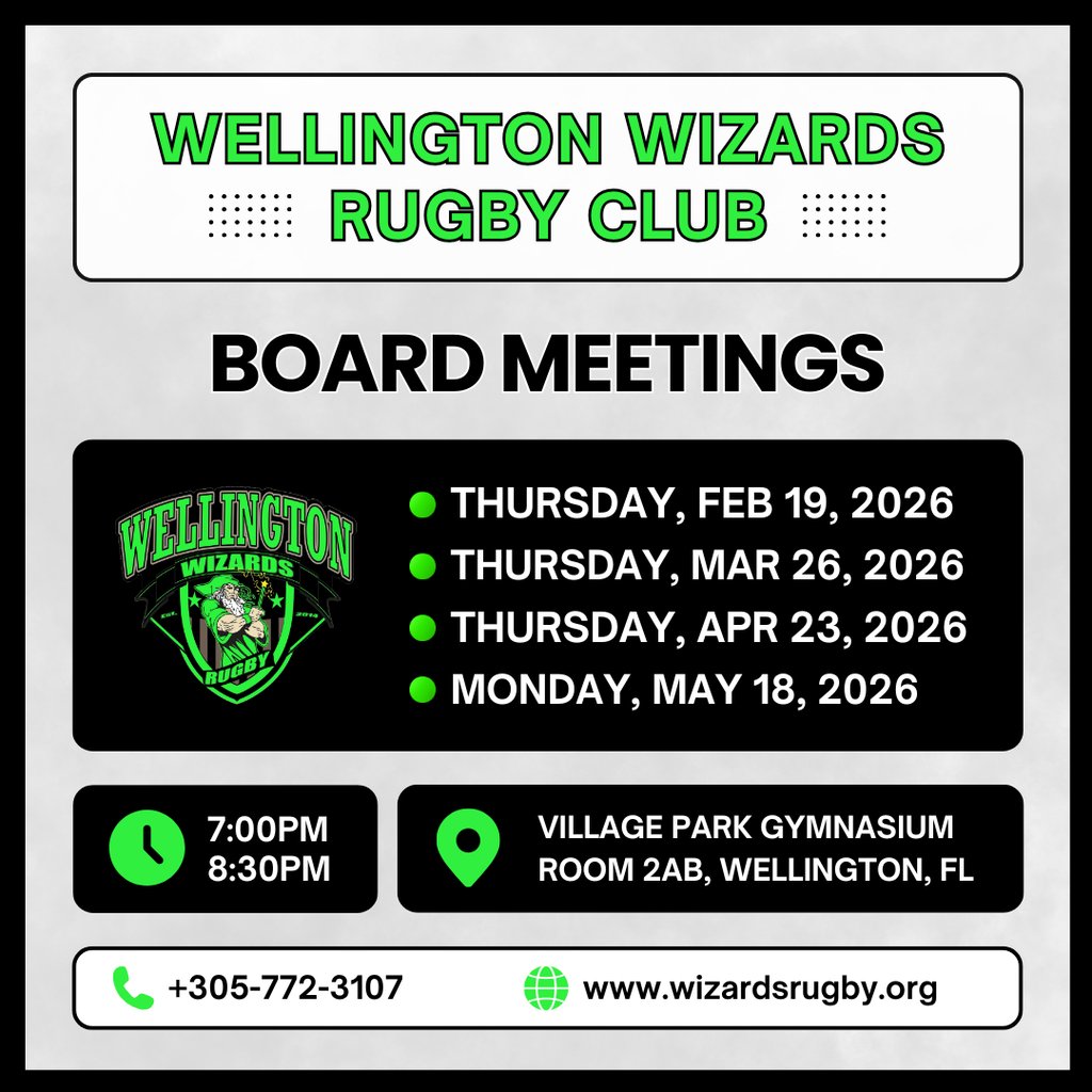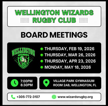 The Wellington Wizards Rugby Club is a not-for-profit 501 (c) 3 charitable organization. Tax ID: 30-1222061
